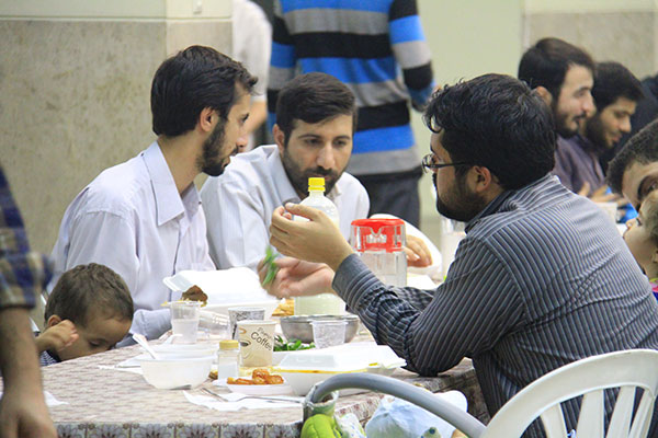 در این مراسم با شکوه و صمیمی، پس از اقامهی نماز جماعت در مسجد دانشگاه امام صادق علیهالسلام، میهمانان، در محل رستوران دانشگاه روزهی خود را افطار کردند. پذیرایی از میهمانان به عهدهی فعالان فعلی بسیج بود، به طوری که هم مسئول بسیج و اعضای شورا هم اعضای واحدهای بسیج و فعالان مرکز تحقیقات بسیج مشغول پذیرایی از میهمانان خدا بودند.